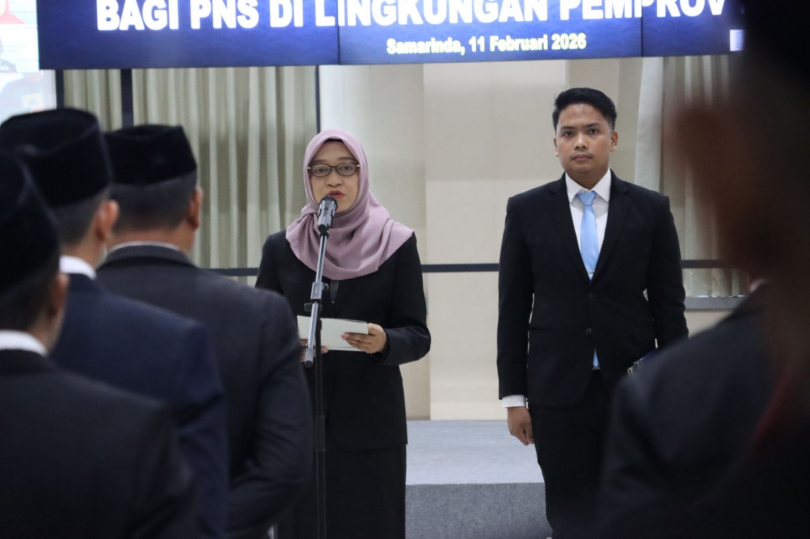 SAMARINDA – Mewakili Gubernur Kalimantan Timur, Sekretaris Daerah (Sekda) Provinsi Kaltim, Sri Wahyuni, resmi mengambil sumpah dan melantik 33 Pegawai Negeri Sipil (PNS) ke dalam Jabatan Fungsional di lingkungan Pemerintah Provinsi Kaltim. Prosesi pelantikan berlangsung khidmat di Aula Kantor Badan Kepegawaian Daerah (BKD) Provinsi Kaltim, pada Rabu (11/2/2026).
