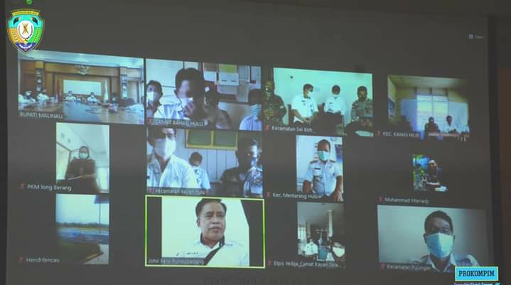 MALINAU, teropongborneo.my.id – Bupati Malinau Wempi W Mawa memimpin langsung rapat terkait pengendalian dan perkembangan Corona Virus Disease 2019 (Covid-19) di tingkat Kecamatan Pedalaman dan perbatasan secara virtual (Zoom Meeting) diruang rapat intulun lantai II Kantor Bupati Malinau pada Rabu siang (14/7).