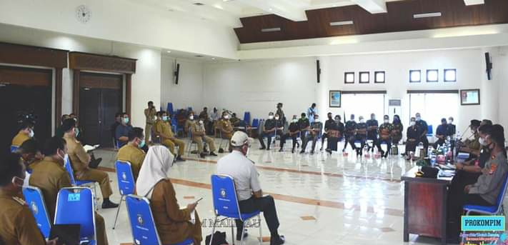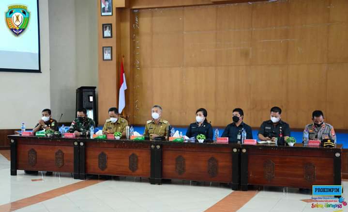 MALINAU, teropongborneo.my.id – Bupati Malinau Wempi W Mawa memimpin langsung Rapat Pengendalian Perkembangan Corona Virus Disease 2019 (COVID-19) di Kabupaten Malinau bersama jajaran Forkompinda, Anggota DPR Malinau, Sekda, para Asisten, Kepala Organisasi Perangkat Daerah ( OPD) terkait dan beberapa Camat berlangsung di Ruang Laga Feratu Lantai III Kantor Bupati Malinau Senin (12/7/2021)