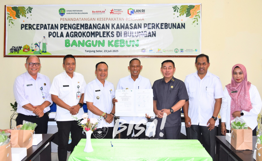 BULUNGAN – Bupati Bulungan, Syarwani, S.Pd, M.Si atas nama Pemkab menandatangani kesepakatan kerjasama pengembangan kawasan Agrokompleks Long Buang pada Rabu (23/7) di Ruang Rapat Dinas Pertanian Bulungan.
