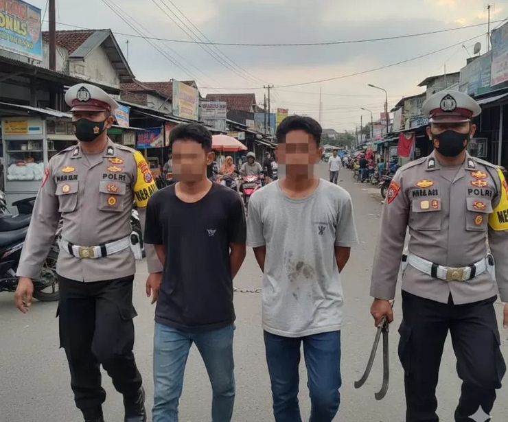 Masing-masing satu bilah belati yang diselipkan di pinggang kiri kedua pria tersebut. Mereka tidak dapat menunjukkan alasan sah membawa senjata tajam di tempat umum,” ujarnya, Minggu (22/2/2026).