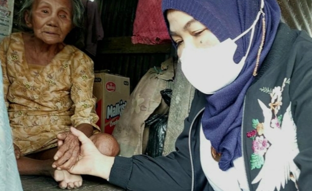 Kondisi si nenek juga tidak bisa berjalan jauh. Dikarenakan kaki mengalami sakit hingga berjalan harus menggunakan tongkat kayu. (red)