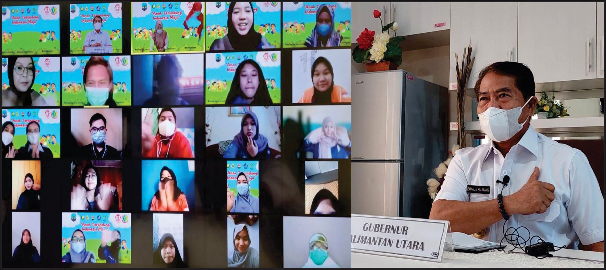 TANJUNG SELOR, teropongborneo.my.id – Gubernur Kalimantan Utara (Kaltara), Drs. H. Zainal Arifin Paliwang SH, M.Hum, menghadiri audiensi virtual bersama Forum Anak (FA) Provinsi Kaltara, di Rumah Jabatan Gubernur, Rabu (28/7/2021). Gubernur mengimbau anak-anak se-Kaltara harus menjadi contoh penerapan protokol kesehatan di tengah kondisi Pandemi Covid-19 saat ini.