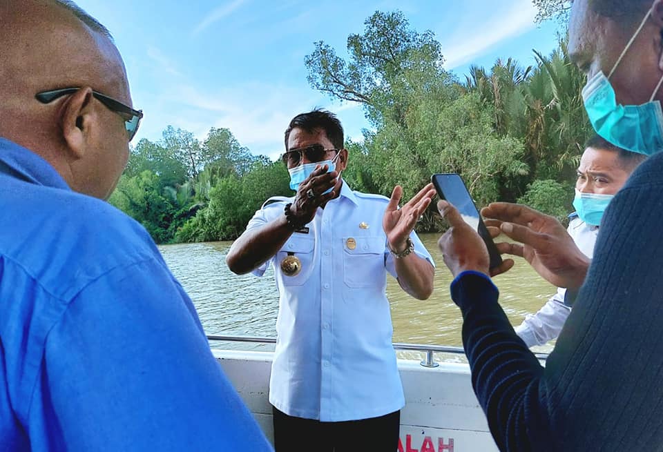 “Ini lokasi alternatif untuk pembangunan pelabuhan itu. Tadi kita sudah mengecek langsung kedalamannya ada sekitar 14 meter. Selain masalah kedalaman dan pertimbangan lainnya, arus air sungainya juga cukup tenang. Masalah ini rencananya akan kita rapatkan bersama instansi terkait,” terangnya.