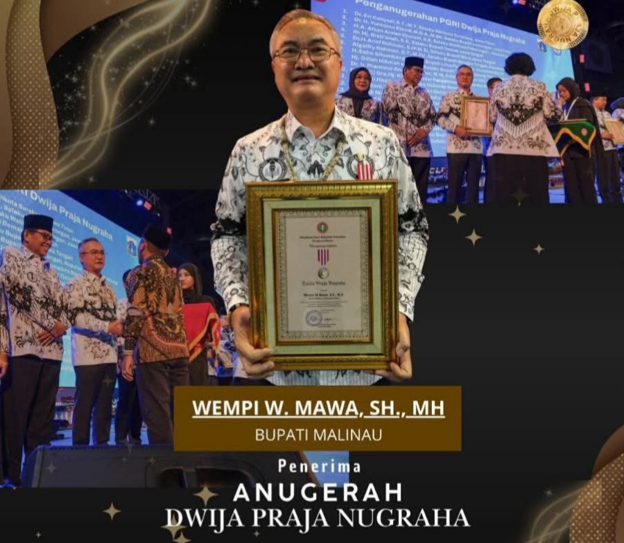 Jakarta, Kaltara (TB) – Bupati Malinau, Wempi W. Mawa, S.E., M.H., menerima Anugrah Dwijaya Praja Nugraha. Ini merupakan penghargaan tertinggi dari Persatuan Guru Republik Indonesia (PGRI) pada puncak peringatan HUT ke-80 PGRI dan Hari Guru Nasional, yang berlangsung di Britama Arena Kelapa Gading, Jakarta, Sabtu (29/11/2025).