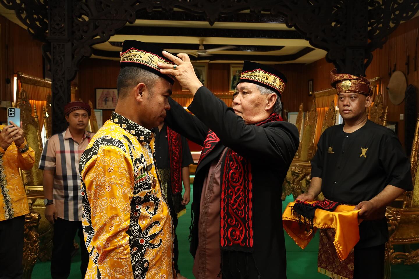 Tradisi adat pun turut dijunjung tinggi dengan pemasangan kopiah dan syal sebagai tanda penghormatan dan pengakuan terhadap nilai-nilai budaya yang kaya.