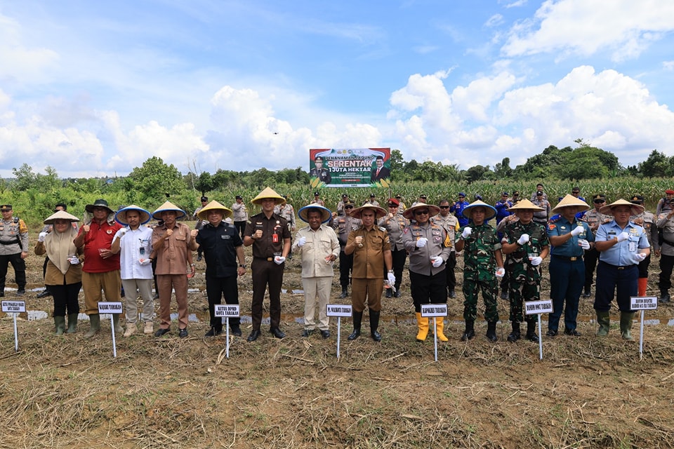 Penanaman jagung serentak ini merupakan program nasional yang melibatkan kerjasama antara Polri, Kementerian Pertanian (Kementan), Gabungan Pengusaha Kelapa Sawit Indonesia (Gapki), Perhutani, Inhutani, sektor swasta, dan swadaya petani.