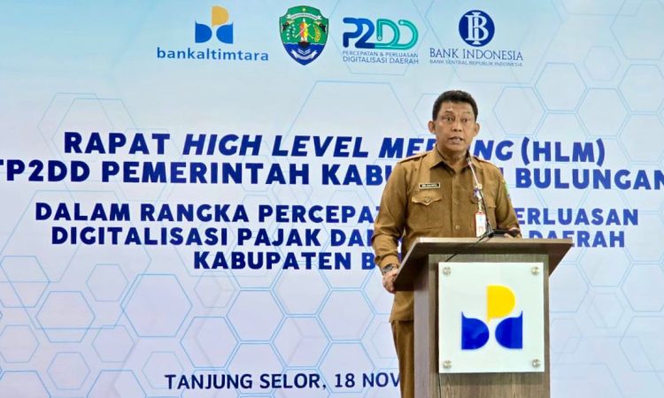 Sementara Pjs Bupati Bulungan H. Haerumuddin. SH. MAP saat menghadiri sekaligus yang akan membuka rapat Hich Level Meeting (HLM) TP2DD, dimana sambutannya menyampaikan TP2DD Kabupaten Bulungan telah terbentuk dari tahun 2021 sebagai amanat presiden dalam RPJMN 2020-2024 untuk melakukan tranformasi pelayanan publik menjadi berbasis elektronik. ”TP2DD bertugas untuk melakukan percepatan dan perluasan ETPD, yang merupakan suatu upaya mengubah transaksi pendapatan dan belanja Pemerintah Daerah dari cara tunai menjadi non tunai berbasis digital,” ungkapnya.