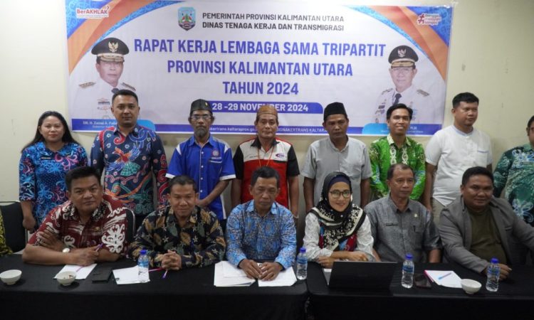 TARAKAN, Teropong Borneo – Dinas Tenaga Kerja dan Transmigrasi (Disnakertrans) Provinsi Kalimantan Utara (Kaltara) menggelar Rapat Kerja Lembaga Kerja Sama (LKS) Tripartit di Hotel Duta, Tarakan, Kamis (28/11/2024). Kepala Bidang Hubungan Industrial dan Pengawasan Ketenagakerjaan Disnakertrans Kaltara, Muhammad Sarwana, SH, M.Hum., memimpin raker yang dihadiri anggota LKS Tripartit Provinsi Kaltara periode 2024-2027.