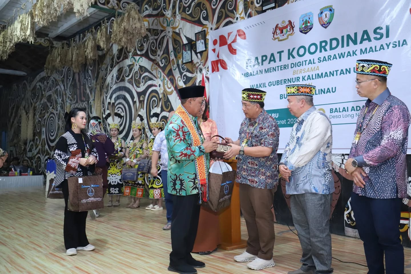 Malinau – Wakli Bupati Malinau Jakaria, SE., M.Si didampingi Asisten Perekonomian dan Pembangunan Drs. Agustinus, M.Ap hadiri Malam Ramah Tamah bersama YB Timbalan Menteri Digital Serawak Malaysia & rombongan yang diselenggarakan di Balai Adat Desa Long Nawang, Kayan Hulu. Rabu (25/03/26) malam.