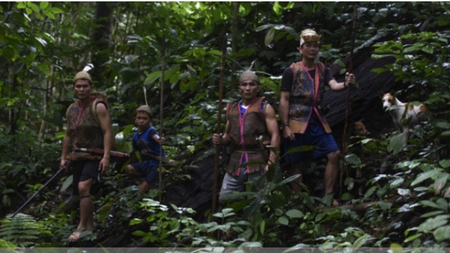 (Ki-ka) Basmairan (29), Sion (7), Eli Safan (32) dan Anugerah (31) berpose dengan persenjataan berburu di Tana’ Ulen, Desa Setulang, Malinau, Kalimantan Utara, Mereka adalah pemuda Dayak Kenyah Uma’lung yang tinggal di Desa Setulang, Malinau, Kalimantan Utara.